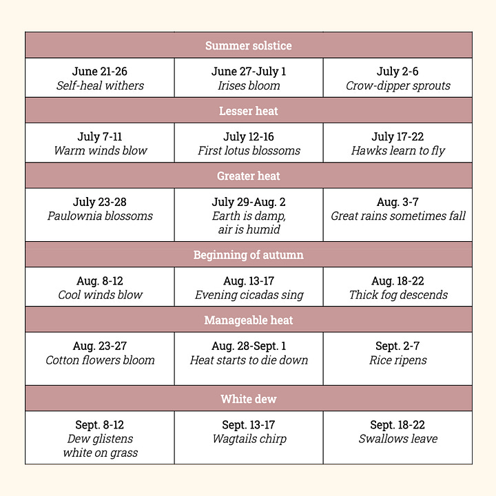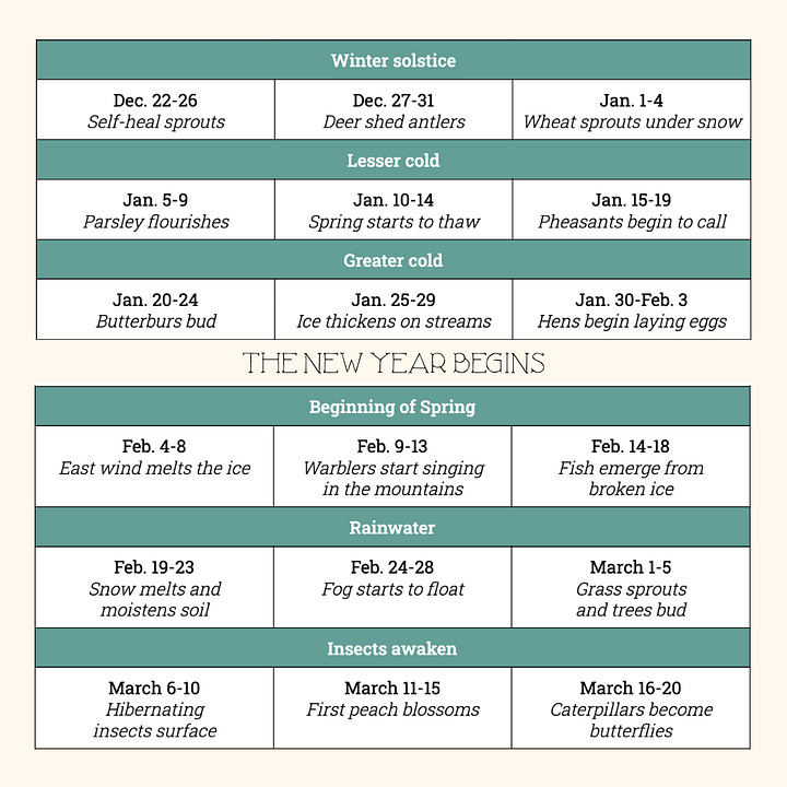 As an outsider, it’s easy to idolize another culture’s hallmarks, but I think there really is something deeply valuable about this ancient calendar. Seasons were once more important to humanity than they are now; consider the role weather played in daily life, farming, and frankly, survival. Perhaps once again recognizing the gradual ebb and flow can serve us in the same way meditation can: a moment of peace.